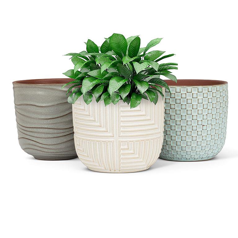Mypicompany Set Of 3 Flower Pot 18 Cm White Colour Large Outdoor Or Indoor Decorative Plastic Planter In Various Sizes And Colours Amazon De Garden